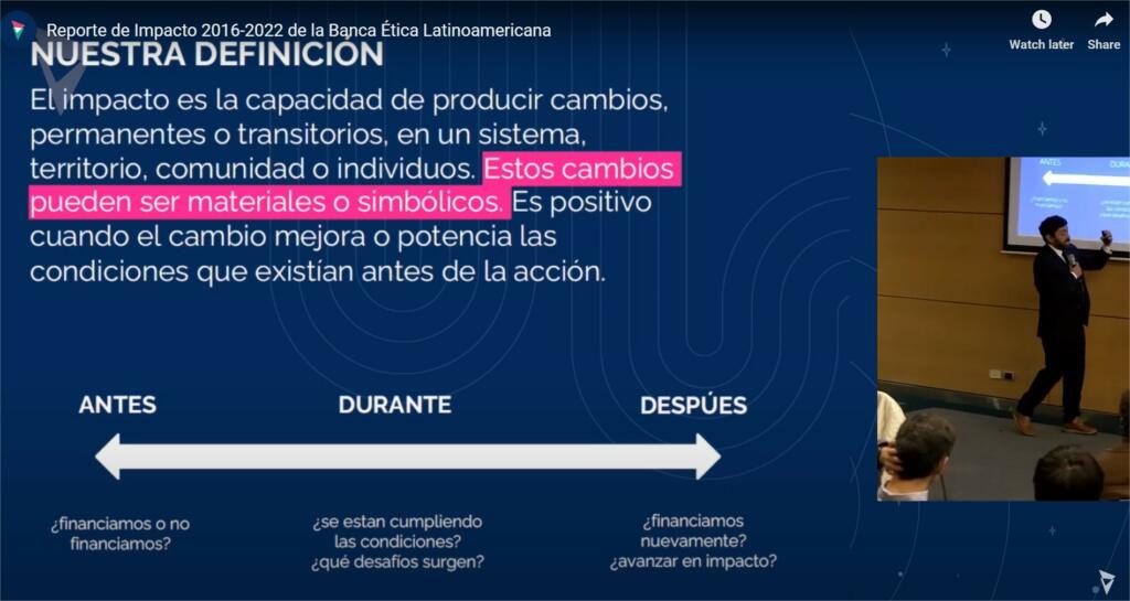 El pasado 26 de abril de 2023, Banca Ética Latinoamericana presentó su Reporte de Impacto 2016-2022, en la sala de eventos de Icare.